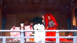 三嶋神社の鳥居は、以前は木造で両部鳥居だったが、現在のものは紀元二千六百年記念行事(1940年(昭和15年)神武天皇即位紀元(皇紀)2600年を祝った一連の行事)として御影石に建て替えられたもの。(拝殿両側の御影石で刻んだ唐獅子にも紀元二千六百年記念とある)また、拝殿の大きな扁額は、今は湖底に沈んだ別荘の持ち主、川崎男爵が同じく記念奉納したもので、 |